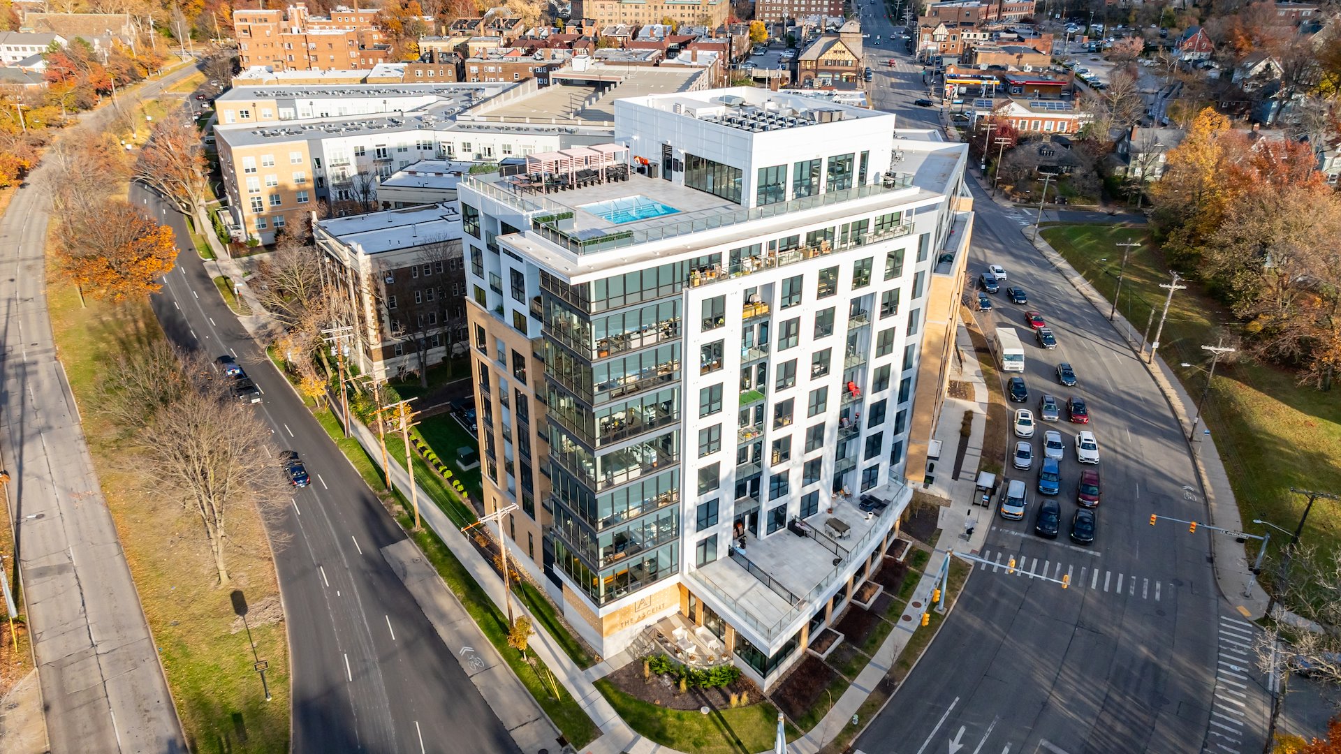 - WALKABILITY - Ascent is walkable to everyday necessities (grocery store, coffee shops) as well as high-end nightlife and dining. The other University Circle rental options are far less walkable to retail and entertainment. Approximately 1/3 of Ascent's residents (empty nesters, young professionals) do not work or attend school in University Circle, a higher percentage than its peer set. The location within the Cedar-Fairmount neighborhood is a big draw.